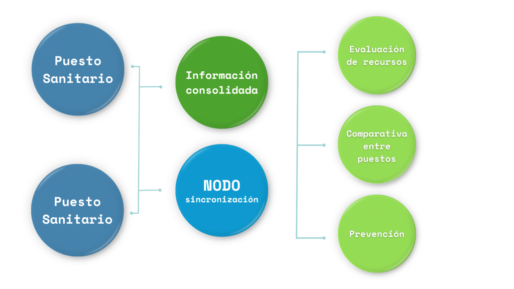 - No se trata de un software de Historia Clínica en sí mismo, sino de una herramienta de sincronización que conecta múltiples entidades de salud, ubicadas tanto en zonas de alta conectividad como en regiones remotas con servicios de internet deficientes.