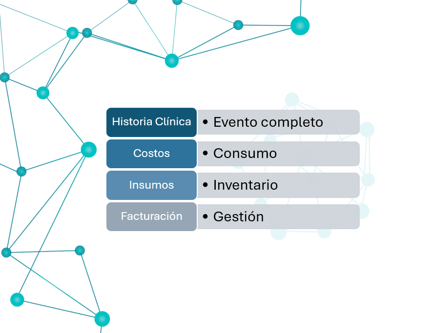 • Cada práctica está asociada a los insumos que normalmente se utilizan.