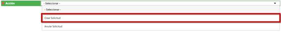 Para crear la solicitud, debemos primero seleccionar lo siguiente: