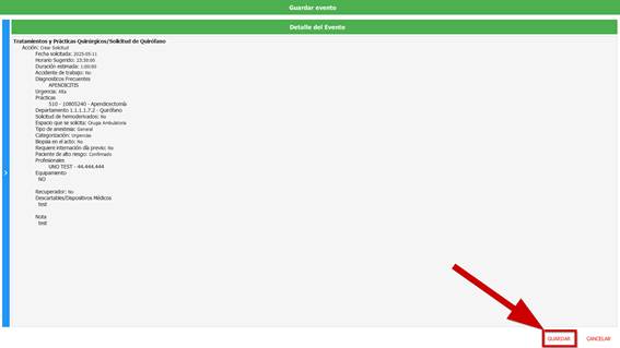 Una vez completada la ficha, guardamos el evento.
